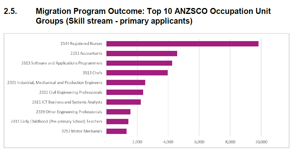 以此类推,大家不妨结合以下各个技术移民签证子类的主申职业类型统计,看看当前该职业能够考虑的签证选择有哪些。