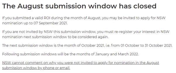 如果未获邀,除非有重大变化,申请人无须重新提交ROI。维州政府会继续从所有申请中邀请最符合条件的申请人。