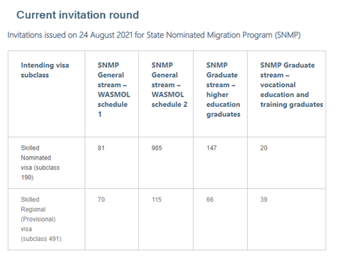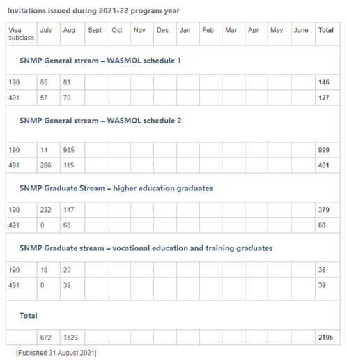 西澳州政府在本财年共计发放1562个190邀请和633个491邀请。