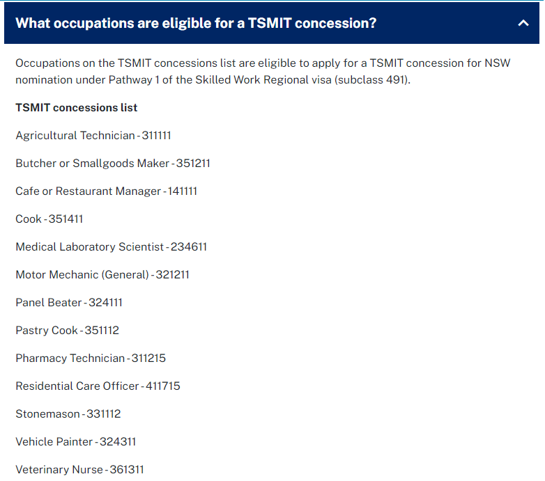这意味着,诸如会计、市场营销、金融、人力等商科相关的部分职业申请人如果今年还想走新州州担,就只能考虑NSW491的Pathway 1这一个途径。因为只有这个Pathway 1途径不限制申请人的职业,但附加条件是需要为偏远地区雇主工作6个月+工作与提名职业高度相关+薪资达到TSMIT。