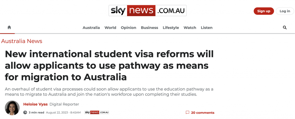首先是在2023年8月24日,澳洲媒体Sky News披露了关于澳洲学生签证申请方面即将进行的改革。