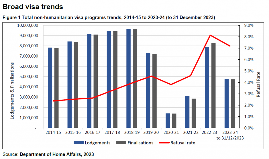如果具体到各类临时签证的变化,不难发现临签持有人的增加主要是由于学生签、旅游签和打工度假签人数的增加而推动的。现在,学签审理工作的重点已经转移到确保澳大利亚提供高质量教育体验的声誉,并根据澳大利亚的劳动力需求、在适当的情况下提供技术就业机会的途径。