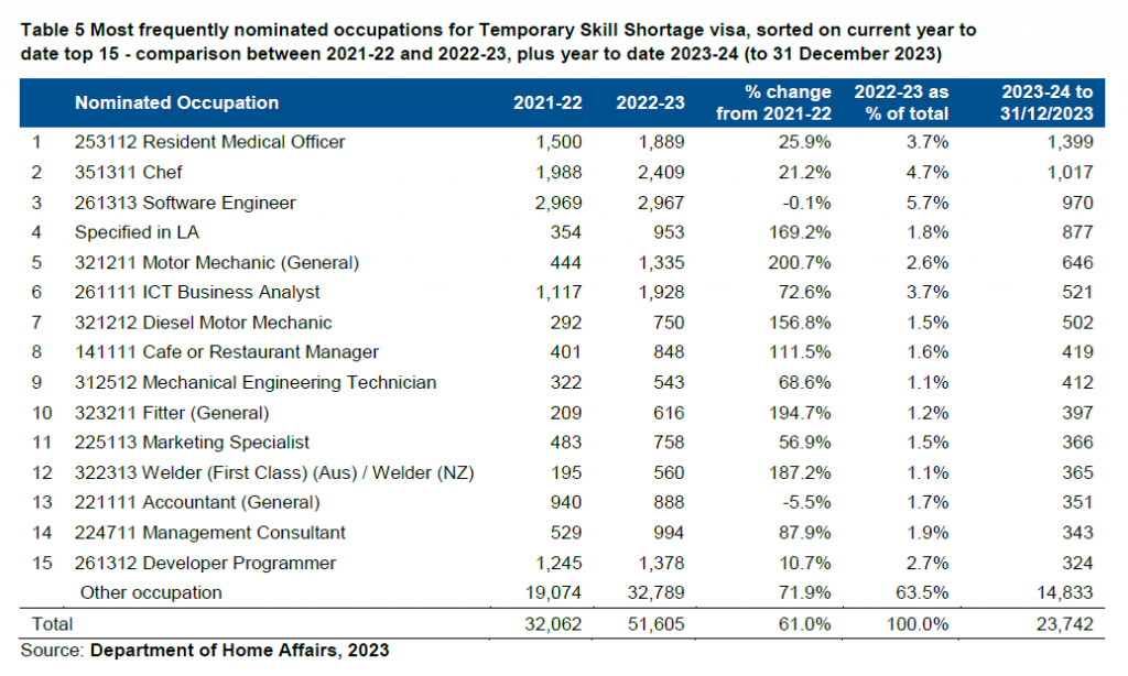 雇主担保482签证方面,过去半年最多被提名的职位主要包括了Resident Medical Officer、Chef和一些IT类职业,说明这些职业的申请人更有机会考虑以雇主担保的方式,留在澳洲,并随着最新2年482转186政策的出台,获得永居。