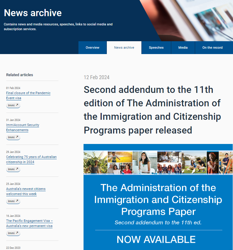 2024年2月12日(周一),澳洲移民局在官网发布了《移民和公民计划管理》第 11 版文件的第二个附录。