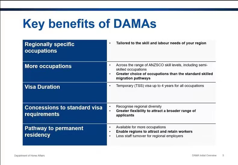 DAMA允许雇主担保海外技术工人,让他们填补那些由当地工人无法填补的职位空缺。 每个州/领地DAMA都是针对当前和新出现的劳动力市场短缺、结合当地的就业情况而量身定制的。