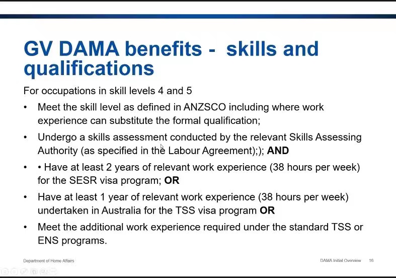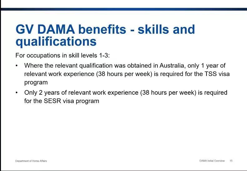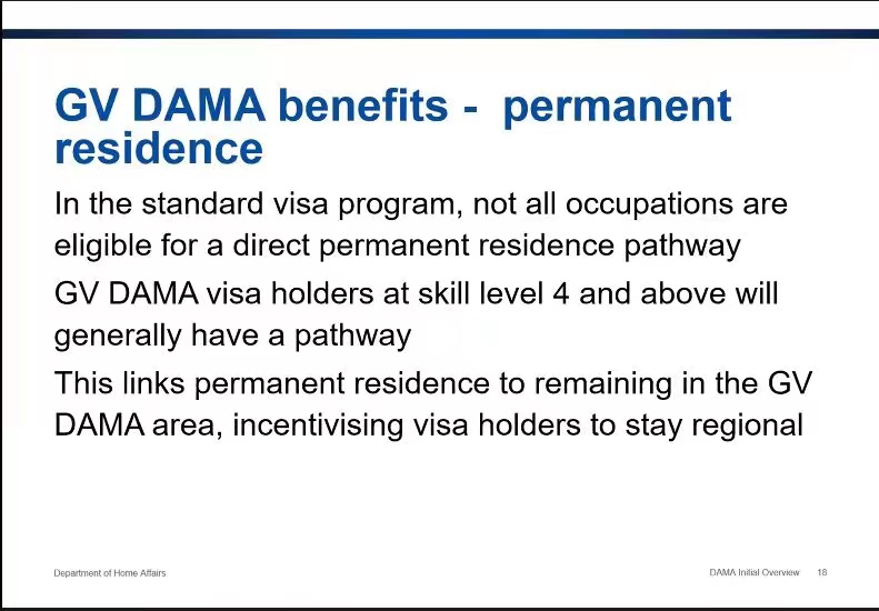 GV DAMA 的Skill Level 4及以上的签证持有人将可在临时雇主担保签证到期后申请永居签证。