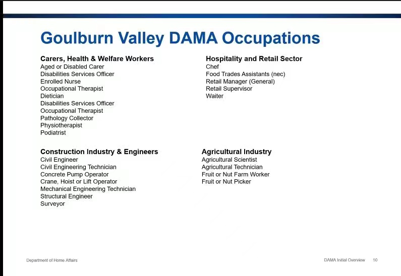 那么关于维州地区的Goulburn Valley DAMA(以下简称GV DAMA)协议,具体有哪些优惠政策呢?下面结合上周移民局举办的information session,带大家梳理一下!