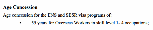 普通的186、494签证的年龄限制为45岁。而GV DAMA下,对于Skill Level 1-4的职业申请人,他们的年龄限制为55岁。