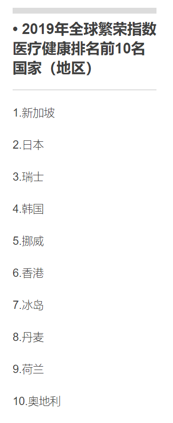 纵观2019年全球繁荣指数医疗健康排名