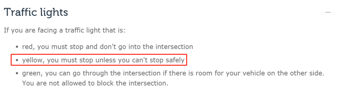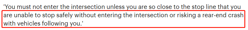 比如说,绿灯变黄的时候你已经接近停车线了。