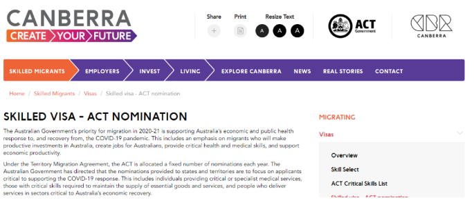无论是191/491签证都需要提名职业在ACT Critical Skill List 上