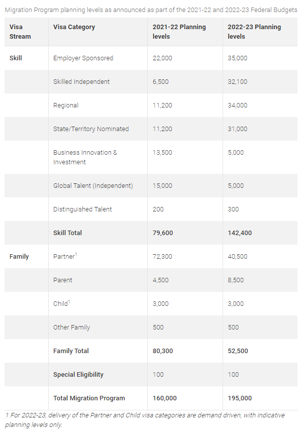 此次移民政策更新中,最大惊喜来自189签证,从2021年到2022年财年的6500个配额增加到了32100个!难怪前几轮的Skill Select邀请都在1万上下、大量境外申请人获邀,此次预算公布的同时,优先境外申请人的技术移民签证也得到了确认。