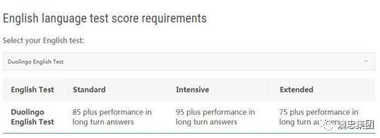 莫那什接受了duolingo的考试成绩和Cambridge linguaskill英语测试成绩,不过提供这些成绩仍然需要上语言班。