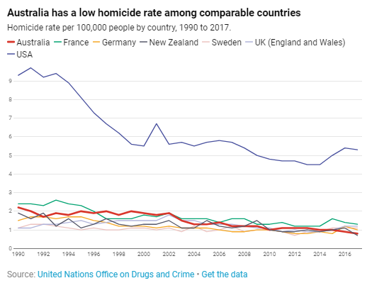 也就是说澳洲的凶杀率算低