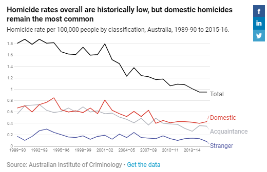 澳大利亚的凶杀案数量目前已降至历史最低水平