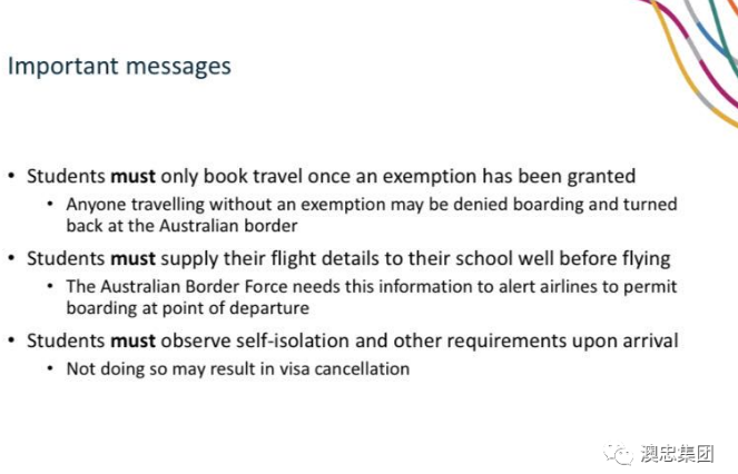 1. 学生必须在豁免申请成功后才可以开始订机票等返回澳洲的准备。