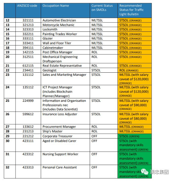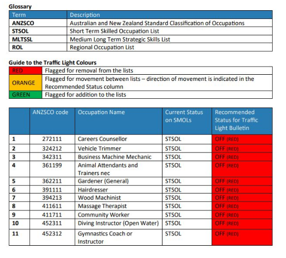 同时,‘交通灯公告’已经发布,该公告列出了那些可能会被移除、改变状态或添加到审查过的迁移名单中的职业。