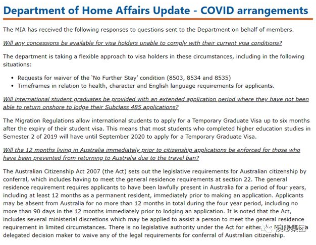 今天,移民代理协会(MIA)收到了来自澳洲移民局的官方回复,移民局解答了移民代理协会之前提出过的一系列问题,具体问答如下: