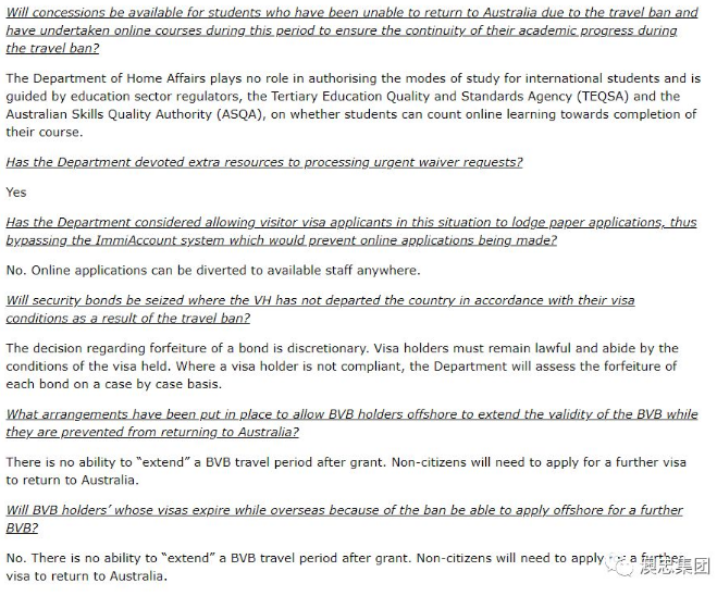 Q4:移民局是否会对那些目前由于旅游禁令而无法返回澳洲的国际留学生给予补助?