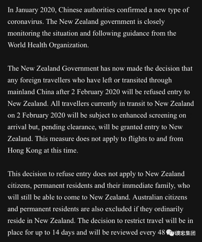 随着澳洲颁布‘禁飞令’,新西兰也宣布14天内禁止所有近期过中国大陆的外国旅客入境!